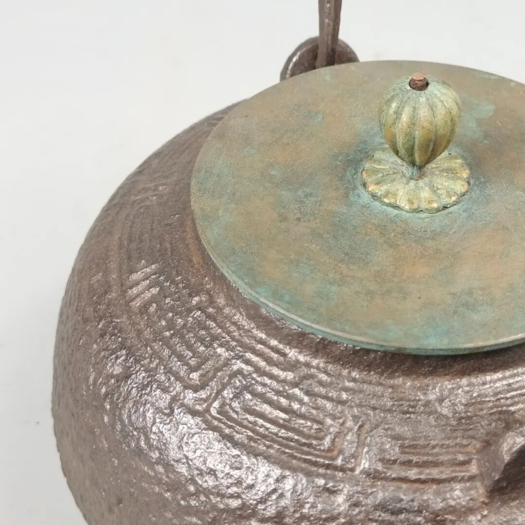 明治时期京都釜师木越三右卫门造日本铁壶。