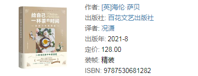 推荐理由:作者对于茶、对于生活的态度,十分令人钦佩和向往。他认为:茶的意义在于,让人懂得停下匆忙的生活脚步,去发现身边更美的风景。作者海伦·萨贝是英国历史学家,主要关注食物历史的研究。从贝尔沃公爵夫人举办第一次秘密茶会到爱斯基摩人的下午茶会,将跨越200年、33个国家和地区的下午茶文化及茶点食谱融于一书。