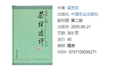 推荐理由:每一个学茶的人都应该看陆羽的《茶经》,因为它不仅是世界上第一部关于茶的专门著作,更是中国茶文化最重要的经典之一。吴觉农先生注释校译《茶经》,根据《茶经》进行了大量的补充与拓展编著了《茶经述评》,不仅再现了原文的经典,而且大大丰富了书中内容,使读者既可以了解历史,又可以联系当下。