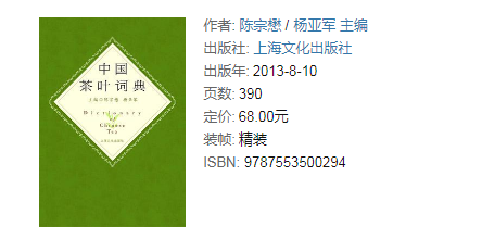 推荐理由:此书一大特点是将茶叶加工的方法和我们的日常生活联系,通俗易懂,是一本快速入门的书,非常适合初识茶的人看。院士陈宗懋和科学家杨亚军担纲主编,可想而知这本书的权威性。《中国茶叶词典》,以辞典的形式反映茶的历史、科技、文化知识。全书分“茶性”、“茶技”、“茶类”、“茶饮”、“茶文史”、“茶经贸”六个部分,共3433个词条,约70万字。