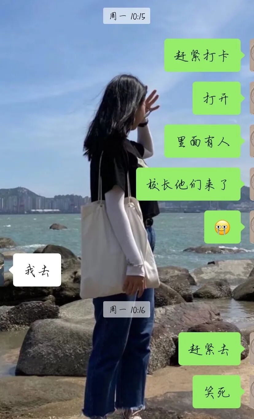 周一早上一二节课正在值班,学长让我把古人斋的门打开,他要进去打扫卫生,当时我就在心里想着好好的打扫什么卫生,还把卫生间门口的警示牌撤了,难道图书馆不限流了?但也没问,我在要下班的时候,和下一班的人对接,你等下记得把古人斋的门锁上,刚刚学长让我把门打开了,咔咔咔,他提起钥匙就走,把门锁上了,本来也没什么。我到楼下打卡的时候寇xx和我说校长来了,“校长来了?”“对啊,他们在楼上,刚刚我们打扫卫生就是因为他来了,学长没和你说吗”“没有啊,天哪,我刚刚让钟x把门锁了,完了”“哈哈哈哈,他们好像在看那个陶瓷”,我连忙给钟x发消息,快把门打开,校长他们好像在里面,还好还好,他们当时在另外一个展厅里面,如果真的把他们锁在里面那可真的是事故了,哈哈哈哈哈,笑死。