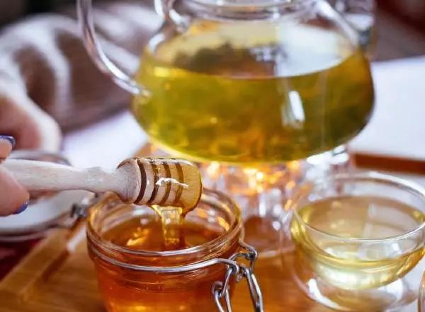 04、茶水加蜂蜜,健康又甜蜜夏天,一杯加了蜂蜜的香茶,不仅能达到补充能量的效果,还能增添一分惬意。特别是红茶加蜂蜜,不仅口感更香甜、氛围更温馨,对身体健康的积极效果也不能忽视。气温一降,出汗量变少了,人们每日的补水量也不经意间减少了。茶叶中含有糖类、果胶、氨基酸等成分,能与唾液产生作用,达到生津止渴的效果,补充人体水分。蜂蜜茶水宜在清晨、饭前1小时或饭后1小时饮用。茶叶加蜂蜜不仅增加了茶的适口性,由于蜂蜜和茶叶都有润肠作用,可以加快人体的新陈代谢从而达到排毒养颜的目的,是最理想的天然美容饮品。