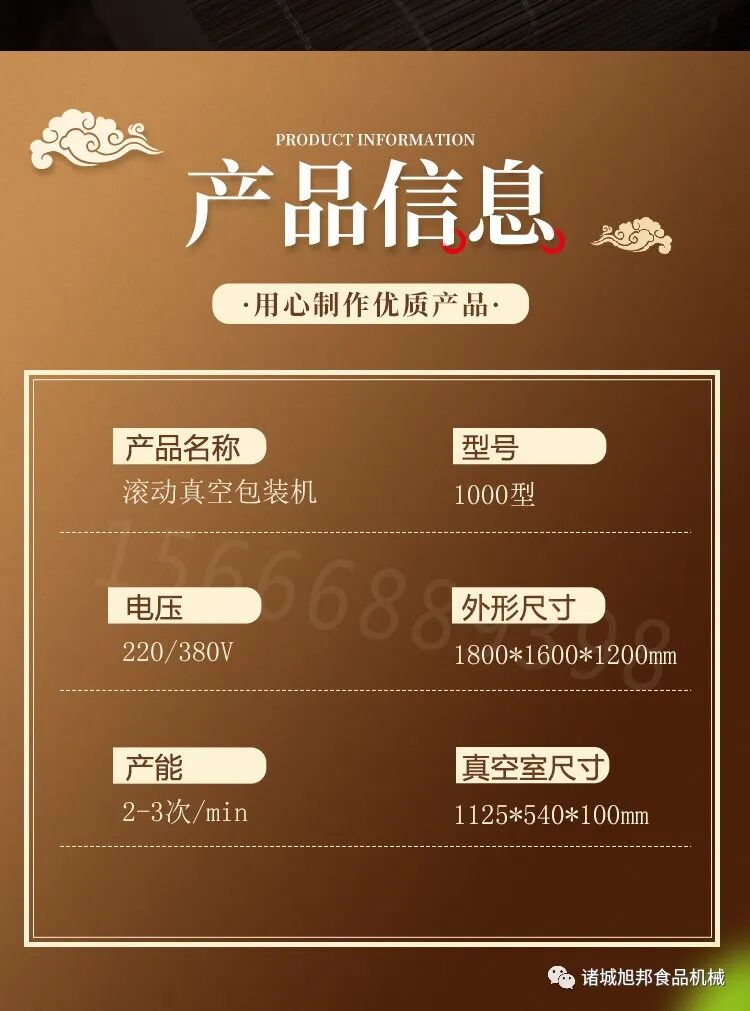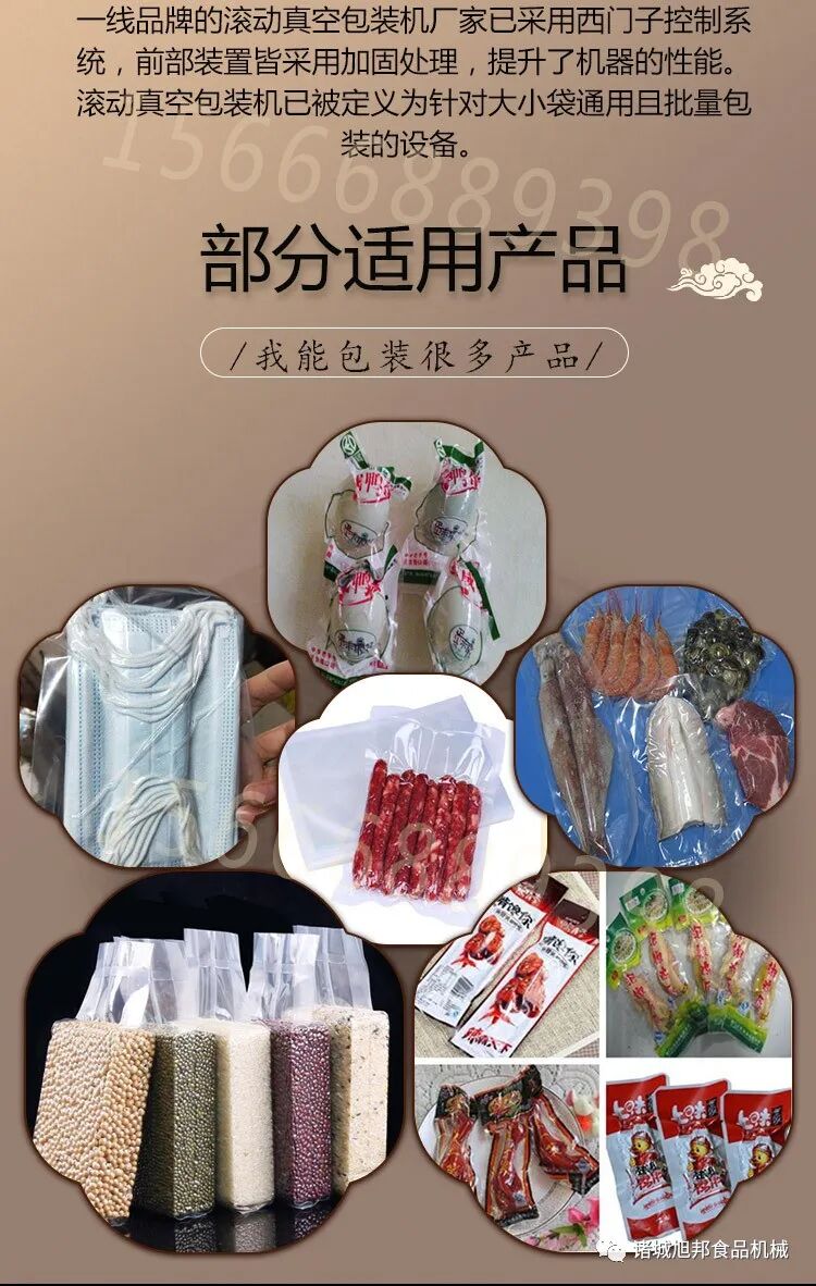 3、滚动式真空包装机的封口装置经特殊设计具有了自动矫正功能,增强了电热丝的使用寿命和封口的准确性。
