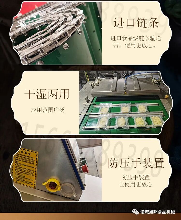 全自动滚动式真空包装机采用链条传动,皮带传送,利用输送带作为包装机的工作台和输送装置,垂直升盖,自动抬盖合盖,是食品真空包装设备中相对畅销的一款设备。