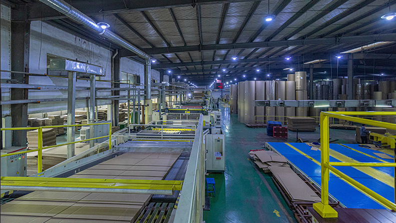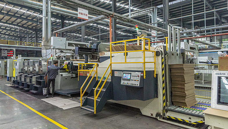 如:清晰度高的柔版制作机、平整的裱纸平压机、薄刀分纸机、色泽大方自然泽实的双色、三色、四 色多台水印机、艳丽的胶印机、高速轮转开槽压线机、多种超大规格的啤盒模切机和各式装钉机等。全套系列的流水线极大地提高了工作效率,增强了我们的核心竞 争力,日提供纸箱十多万件。