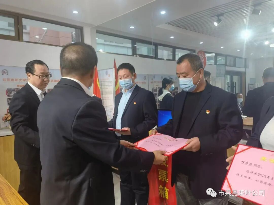 对出席市供销社系统2021年度评选的“先进工作者”及公司评选出来的2021年度“先进工作者”、“优秀管理人员”、“销售能手”9名先进典型模范予以表彰。