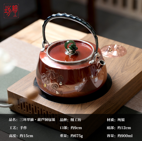 银壶本身洁净无味,而且热化学性质稳定,不易锈,不会让茶汤沾染异味。银的热传导性在所有金属中是最突出的,它能够迅速散发血管的热量,有效预防心血管疾病。