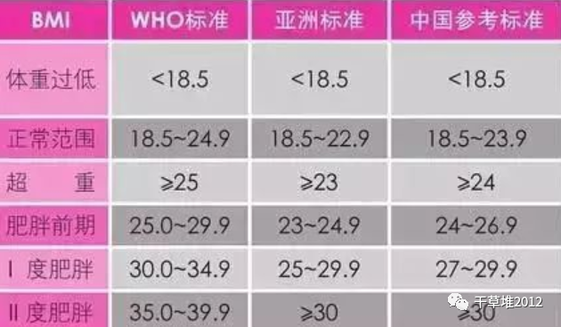 对照上表最后一列的中国参考标准,他或者她就属于肥胖前期需要减肥。