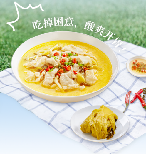 据介绍,肉片选自猪肉里最嫩的部位猪里脊;酸菜选用四川高古坛低温发酵的酸菜,自然发酵,脆嫩无渣,0香精色素;以现吊猪筒骨汤为引,天机海南黄灯笼辣椒酱和云贵泡椒,加上优质生姜、泡萝卜等多种天然食材,经慢火炖熬制成了这味地道的川式酸爽。(来源:麦子妈)