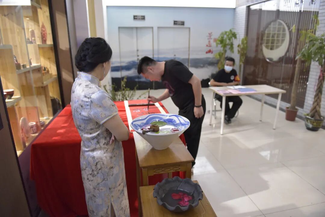 活动签到处,我们准备了毛笔和书画签到轴,出席此次活动的朋友、来宾可在此签到,签到完,净手入席。希望大家能在甘露茶时光,感受春日美好。
