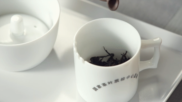 通常审评杯的容量是150毫升,可从样盘上取3克茶,放入审评杯中,并用沸水冲泡。出汤时,审评杯的盖孔朝向杯柄,将审评杯倒扣在碗中即可。