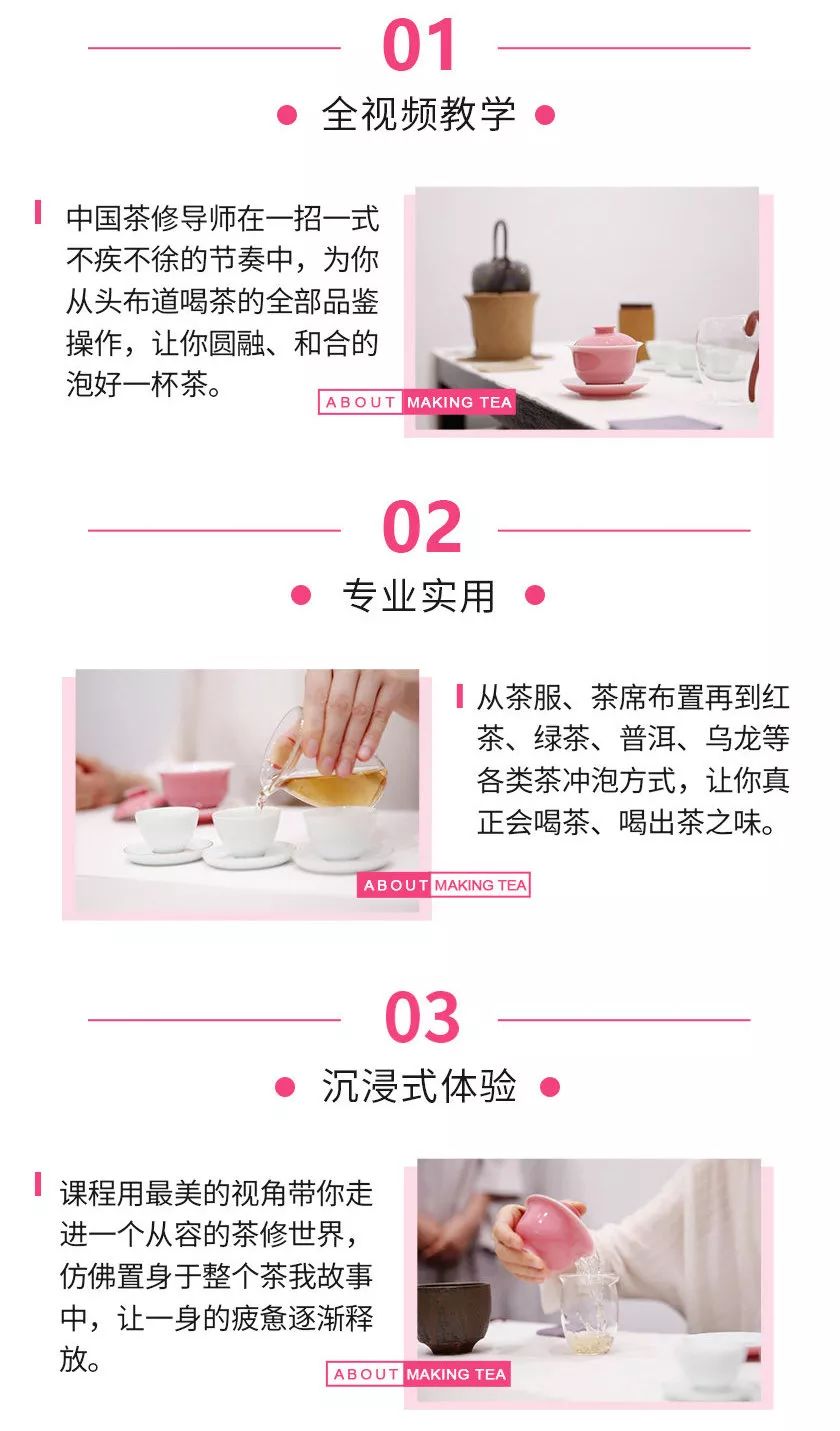 全视频授课,沉浸式体验,在从容中走入茶修世界,释放出真实的自我,为你的人生带来一种全新的可能。
