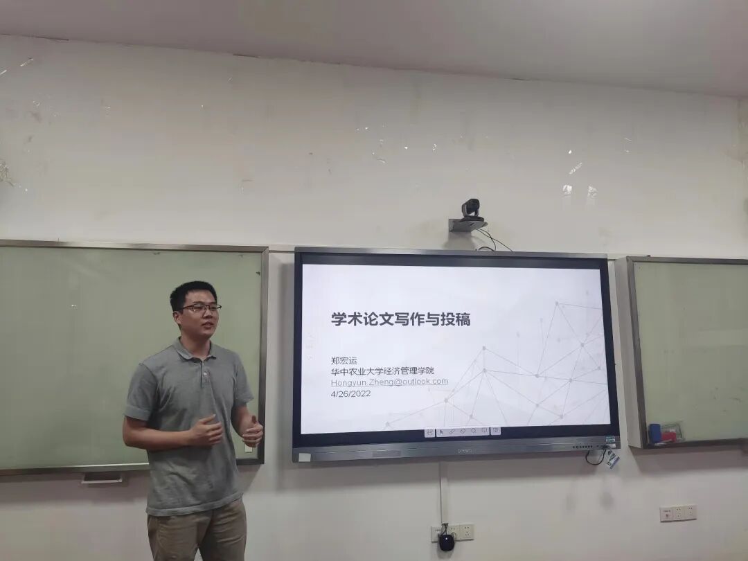 4月27日晚,经济管理学院在人文楼M505举办了以“学术论文写作与投稿”为主题的学术晚茶活动,本次活动邀请到了农业经济管理专业博士研究生郑宏运,他给到场同学分享了自己在论文写作与投稿过程中的心得与体会。