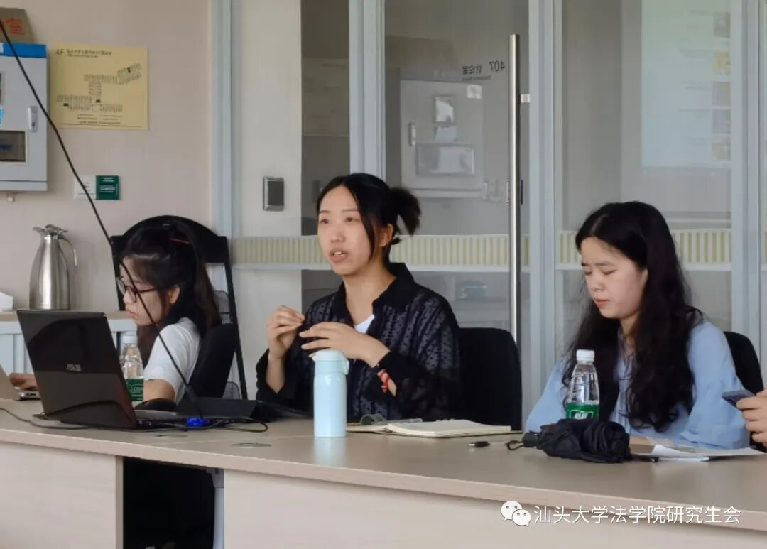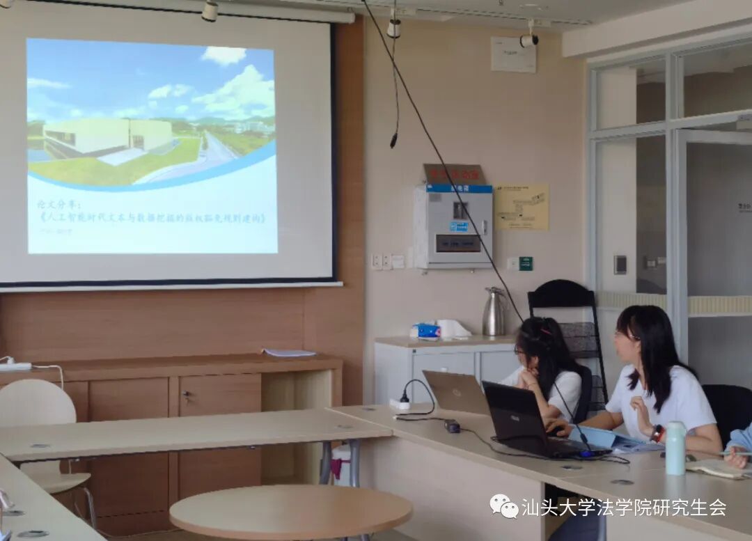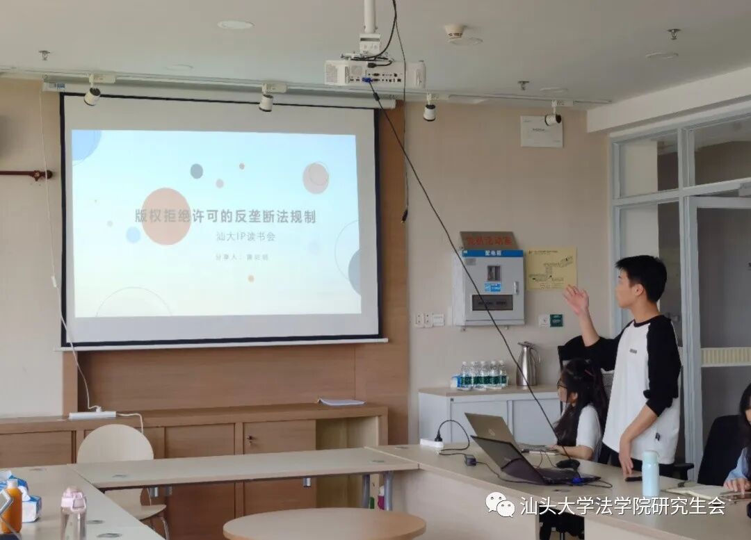 黄启明、王蕙媛、郭钰莹三位同学就数字作品版权保护、文本与数据挖掘版权保护、版权拒绝许可的反垄断法规制等内容进行介绍,并提出自己对于所选择论文中观点的解读和思考,并和与会同学进行分享交流。黄启明同学介绍了音乐版权垄断的由来以及理论基础,王蕙媛同学介绍了法律解释的论证方法包括成文法论证和不成文法论证,郭钰莹同学提出了关于TDM版权豁免规则中自己的想法即使用三步检验法+四要素分析法,都为同学们进行下一步研究提供了帮助。