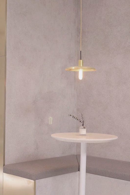 不管是纤细又有设计感的金属灯具、桌上文艺范儿十足的花器,还是浅灰的背景都充满了高级感。