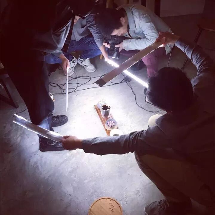 第一家店装修的时候和设计师沟通不好。她就自己画图纸,自己跑建材市场,自己在网上淘桌椅。就连海报,都是拖了几个朋友晚上关店后,门一拉,自己打光在铺子里拍的。