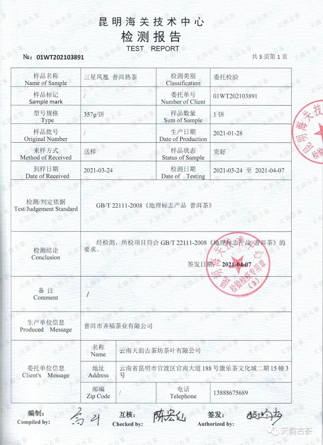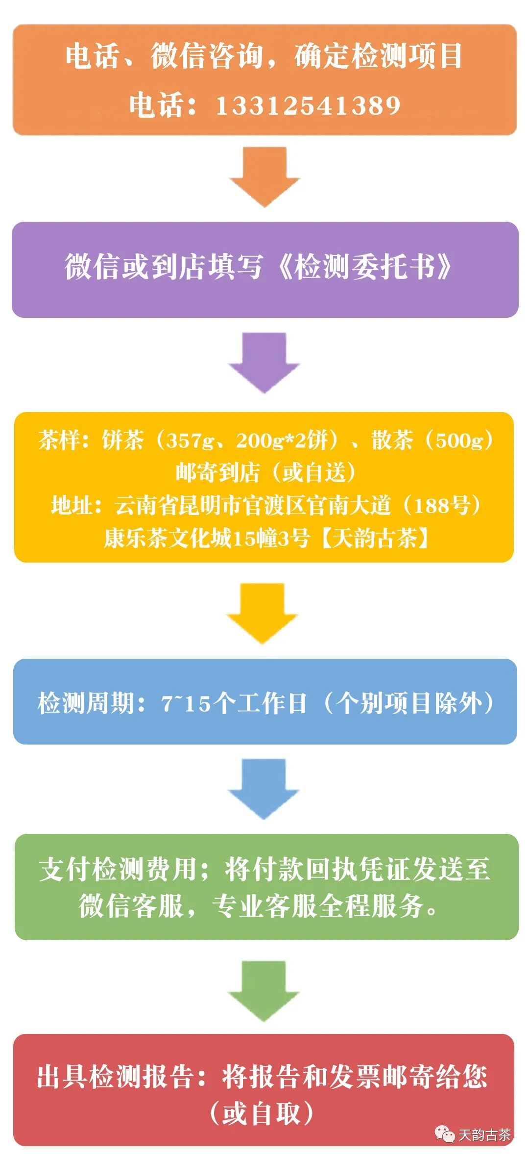 如果你有检测需求,却不知道要怎么检测,那么,你可以把茶品送来【天韵古茶】!检测点的全名是:昆明海关技术中心昆明康乐茶城办事处。这是由昆明海关技术中心在昆明市官渡区康乐茶城设立的办事处,可以提供样品接收送检、咨询相关服务。