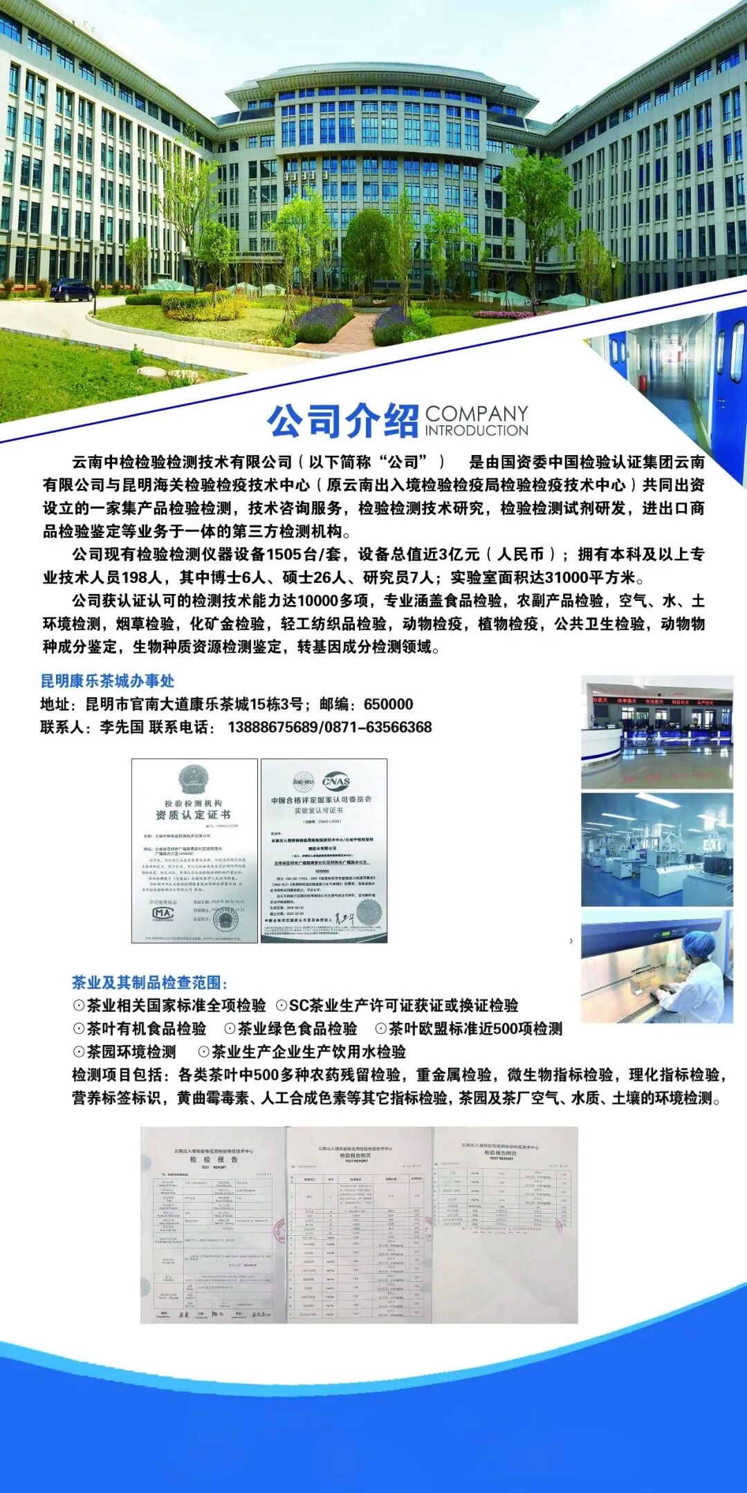 昆明海关技术中心,扎根云南茶产业源头,在云南省内多地均设有分公司及接收样品、检测服务办事处。力求为客户提供便捷、快速、准确的检测服务。