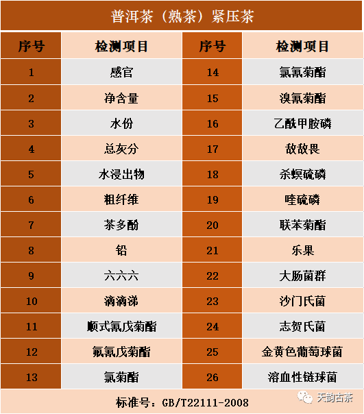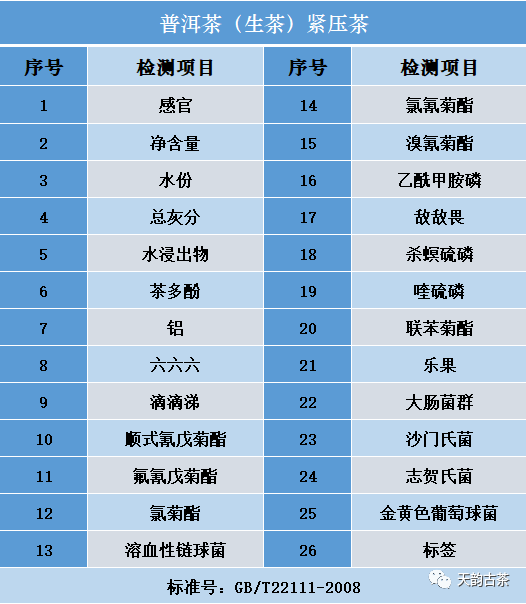 为方便大家选择,以下为国标检测套餐供大家参考,也可根据您的需要灵活选择~套餐一:普洱茶-紧压茶(生、熟)国标检测