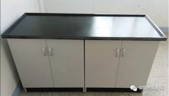 干评台:设置于评茶室内靠窗口处,用以放置样茶罐、样茶盘,审评员需要在此审评茶叶外形的额形态与色泽。干评台高度一般要求90-100厘米,宽度为50-60厘米,长度视评茶室及具体需要而定,台面漆成黑色,以免影响观茶,台下设置样茶柜。
