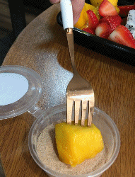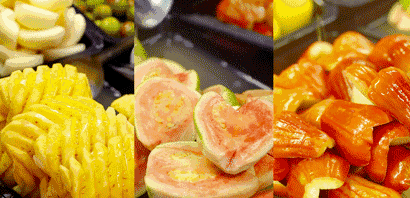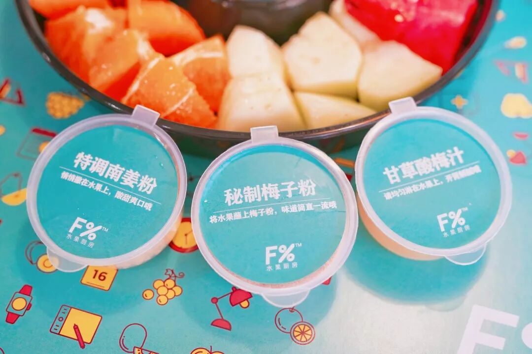 蘸着特有的汁粉吃水果可是挺神奇!F%水果厨房提供3种蘸料:南姜粉、酸梅汁、梅子粉!每种料蘸水果吃都有它独特的味道和口感。