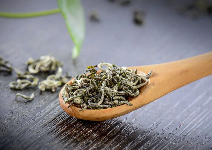在绿茶上,就是在最适宜的时间采摘、挑拣群体种的鲜叶,由非遗传承人手工制作。