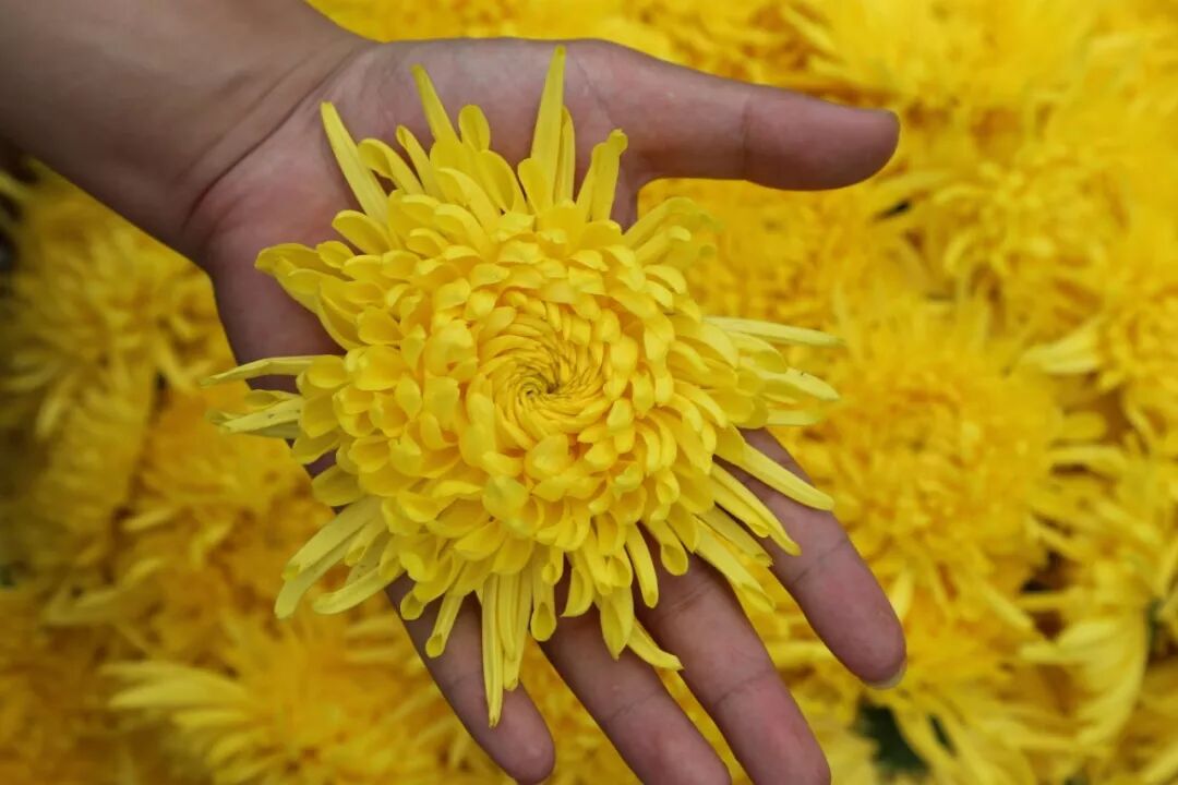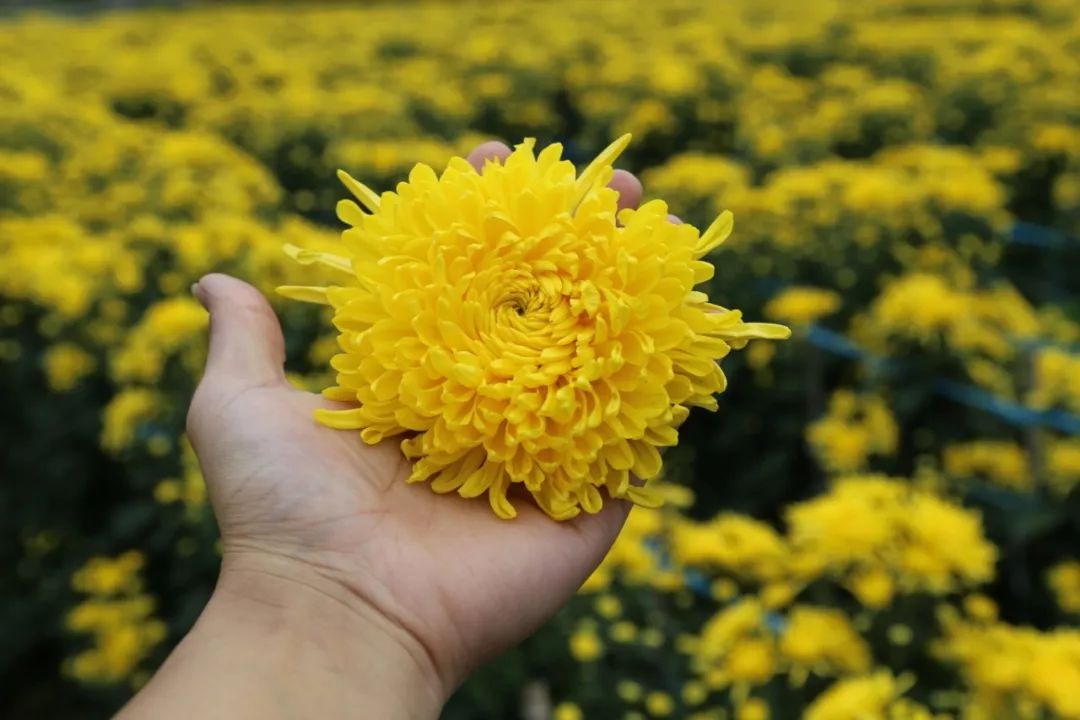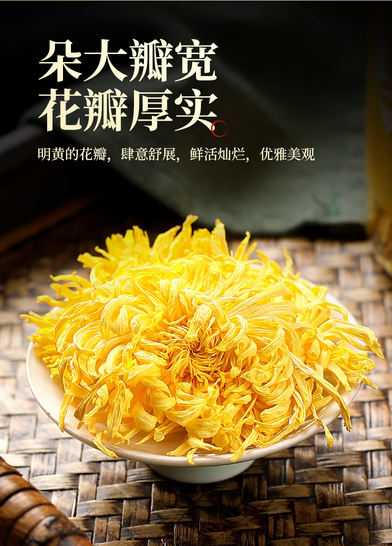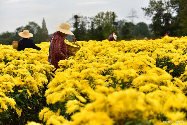 而且气候温暖多雨、光照充足,产出的金丝皇菊花盘硕大、颜色鲜艳,品质优良独特
