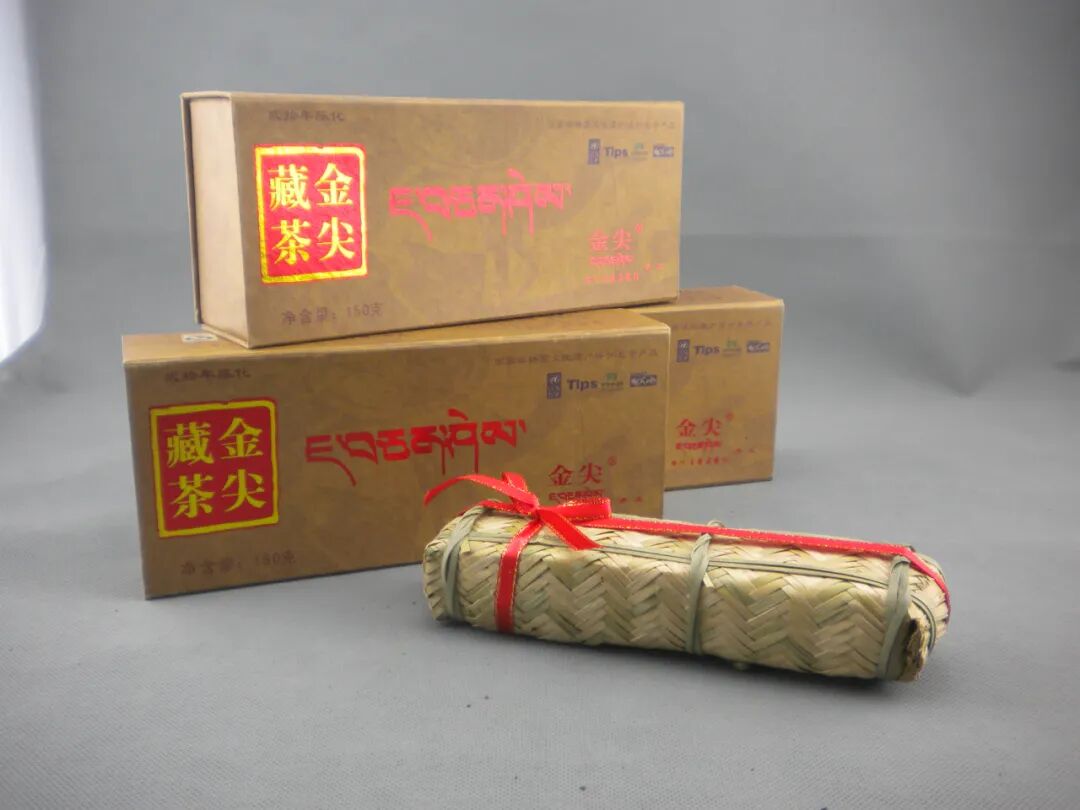 精选其一芽二、三叶成熟茶拼配20年陈化老雅细茶制作。故名“金尖”。03
