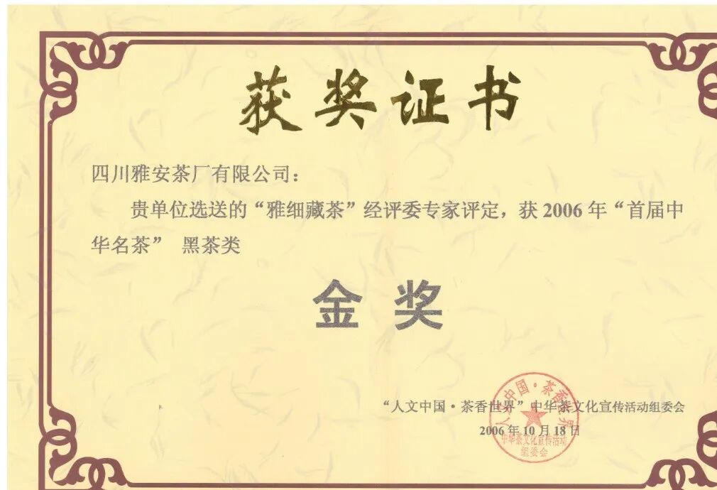 2010年,联合国为表彰雅安茶厂作出的该特殊贡献,特授予雅安茶厂“千年金奖”