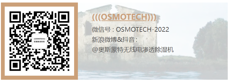 奥斯蒙特·无线电渗透除湿机在欧洲拥有三十余年历史,以电渗透原理(给水的两端分别通上不同的电极,水总是从正极向负极移动)为基础,使用电磁脉冲技术为墙体中的极性水分子赋予正电极,不断将墙体里的水分疏导到地下土壤中。可以有效除去墙体水分,并在一定程度下降低空气中水分。